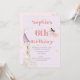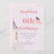 A Princess and Unicorn themed personal aged birthday invitation featuring a Princess with dark hair on a unicron.