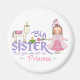 Pretty princess in pink with unicorn and crowned frog with text that reads 'Big Sister'. Has matching little sister and middle sister designs.