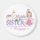 Pretty princess in pink with unicorn and crowned frog with text that reads 'Middle Sister'. Has matching big sister and little sister designs.