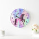 Unicorn purple holographic name girl large clock