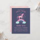 A cute pink unicorn surrounded with hearts and standing on a rainbow and decorates this cute girl unicorn birthday party invitation. Personalise it for you girls birthday party. Designed for you by Blackberry Boulevard.