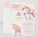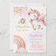 Unicorn Rainbow Pink Gold Pastel Birthday Invitation