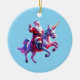Unicorn Riding Santa Ceramic Ornament