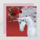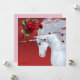 A beautiful white unicorn is decorated with red ribbons and roses.