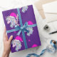 Unicorn Santa roll out Christmas wrapping paper dark purple.