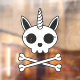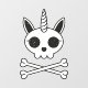This graphic art piece combines the whimsical and the macabre, featuring a stylised skull with large, expressive eyes, a unicorn horn, and cat-like ears. As seen on Sophie's t-shirt, the skull is accompanied by crossbones, enhancing its playful yet gothic appeal. The design uses a simple black and white colour scheme, which emphasizes the bold and graphic nature of the illustration. This unique blend of elements makes it a perfect choice for those who appreciate a blend of fantasy, dark humour, and minimalist art.