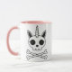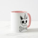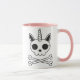 This graphic art piece combines the whimsical and the macabre, featuring a stylised skull with large, expressive eyes, a unicorn horn, and cat-like ears. As seen on Sophie's t-shirt, the skull is accompanied by crossbones, enhancing its playful yet gothic appeal. The design uses a simple black and white colour scheme, which emphasizes the bold and graphic nature of the illustration. This unique blend of elements makes it a perfect choice for those who appreciate a blend of fantasy, dark humour, and minimalist art.