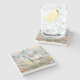 The coasters are gorgeous, a quality feel and heavy weight. They look like a precious archeological find. A rustic stone juxtaposed with a modern floral black and white print. I like the way the print goes slightly imperfect on the cut stone edges giving them a kind-of natural beauty.