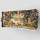 This unicorn tapestry is an enhanced reproduction of the "The Unicorn is Found" tapestry, which is the second tapestry of a series of seven mediaeval tapestries that showcases the mythical unicorn.The series is entitled "The Hunt of the Unicorn" which are also referred to as the Unicorn Tapestries". The tapestries were created from 1495-1505. This Unicorn is Found tapestry shows a group of mediaeval noblemen and hunters, as well as all kinds of ferocious lions and leopards. There is a unicorn at the front, a beautiful white unicorn, which has its horn pointed downward as it kneels. There is a mediaeval fountain between the unicorn and the huntsmen.