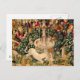 This unicorn tapestry is an enhanced reproduction of the "The Unicorn is Found" tapestry, which is the second tapestry of a series of seven mediaeval tapestries that showcases the mythical unicorn.The series is entitled "The Hunt of the Unicorn" which are also referred to as the Unicorn Tapestries". The tapestries were created from 1495-1505. This Unicorn is Found tapestry shows a group of mediaeval noblemen and hunters, as well as all kinds of ferocious lions and leopards. There is a unicorn at the front, a beautiful white unicorn, which has its horn pointed downward as it kneels. There is a mediaeval fountain between the unicorn and the huntsmen.