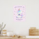 Cute unicorn theme baby shower welcome sign poster featuring an illustration of a baby unicorn with faux gold horn and rainbow color hair. Purple and pink theme color.