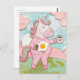 An adorable pink unicorn in PJs has her morning coffee and an egg as she tries to wake up and get ready for a new day with pink clouds and a castle in the background