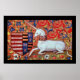 UNICORN WITH RED BLUE FLORAL MOTIFS POSTER