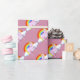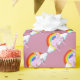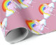 Pink Wrapping paper with Pink Unicorns on a white cloud with a multi colour rainbow. Colour of paper can be customised.