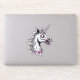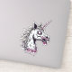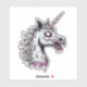 The unicorn's eyes are hollow and lifeless, yet one of them glows with an unsettling, supernatural light. The once-pristine horn is now cracked and jagged, symbolizing its descent into zombification. Pink blood oozes from wounds and drips from its mouth, adding a surreal yet striking contrast to the otherwise grim visage.this design merges whimsy with the macabre. It's perfect for fans who appreciate a bold and unconventional take on mythical creatures, combining the enchanting allure of unicorns with the chilling intrigue of zombies.