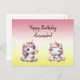 The front image shows two happy unicorns, with daisies, on a gradient pastel background. Text on front says, "Happy Birthday, Alexandra!", and is customisable. Perfect for sending to a girl who loves unicorns and/or daisies!