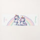 A chic, personalised yoga mat with a cute unicorn theme, featuring a watercolor painting of two adorable unicorns, on a yoga mat, in yoga poses. In the background, a pastel coloured rainbow and gold stars (digital). A perfect gift for a girl, teen or woman - mum, your girlfriend, best friend or any special person in your life who loves yoga, unicorns and pastel colours, for a birthday, Christmas, Mother's Day or any occasion.