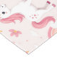 Girly Unicorn Table Runner featuring dreamy, cute Unicorn dreamland with flowers, rainbows and clouds in pale pastel colours.