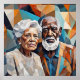 This geometric-style piece portrays an elderly couple with love and serenity, using colourful triangles in warm and cool tones. The interwoven shapes symbolise a shared life, while vibrant colours highlight the strength and harmony of their connection over time.