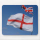 Photograph of the British Union jack flag and the England flag flying together on the same pole. Image available on various gifts and products. Mousemats. Mousepads.