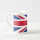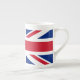 The British flag applied to a bone china mug. Set includes mugs in several sizes (including bone china, and espresso cups), candy jar, pitchers and tea pot in two sizes.