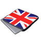 Laptop case with image of the Union Jack Flag, in colours of red, white and blue.