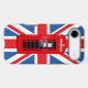 Union flag (also known as the Union Jack); British flag in a design with the British red telephone box.
