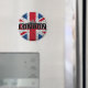 Magnet with Union Jack and London Skyline. Decent design and a nice give-away for all London fans and visitors. Change the size or position of the graphic elements. Add text and set the font , color and size according to your wishes. Create a refrigerator magnet according to your own ideas. Attractive special prices for large customers. You will find the exact conditions during the order process.