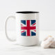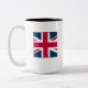 A small union jack on a big two tone 15 oz. mug, you and your mates will enjoy sharing tea and even coffee in this piece of custom drinkware only for proud Anglophiles and those who call the British Isles home.