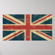 A patriotic red, white and blue Union Jack vintage aged and faded British FLAG design . Flag of Great Britain United Kingdom