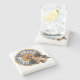 The coasters are gorgeous, a quality feel and heavy weight. They look like a precious archeological find. A rustic stone juxtaposed with a modern floral black and white print. I like the way the print goes slightly imperfect on the cut stone edges giving them a kind-of natural beauty.