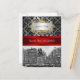 Customisable Invitations and accessories with a black and white view New York City's Union Square Park in the winter, lightly covered with snow. It also features a black damask pattern against a silver grey background, a red ribbon and a white label in your choice of a silver or gold look frame.