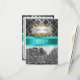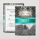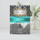 Customisable Invitations and accessories with a black and white view New York City's Union Square Park in the winter, lightly covered with snow. It also features a black damask pattern against a silver grey background, an aqua / teal ribbon and a white label in your choice of a silver or gold look frame.