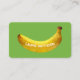 Modern and unique business card featuring a 3D illustration of a banana fruit with your name in bold white letters on a light yellow green background. Cards reverse to editable placeholders for your details in matching curved text typography.