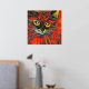 Unique and vibrant abstract cat painting with real gold foil floral pattern over top. The cat is vibrant colours of red, gold, and orange. A unique piece to brighten up your home's walls. Cat lovers will love this.