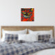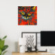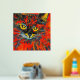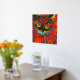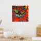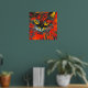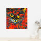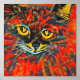 Unique and vibrant abstract cat painting with real gold foil floral pattern over top. The cat is vibrant colours of red, gold, and orange. A unique piece to brighten up your home's walls. Cat lovers will love this.