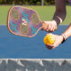 Stylish and colourful abstract monogrammed pickleball paddle.