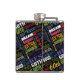 The flask itself is fine. It’s a cheap flask, obviously bought in bulk, however am prepared to overlook that. Given that it is a personalized item, I would have liked to have seen gift boxing instead of the generic packaging. Terrible printing, and/or quality. It’s a cheap, tacky vinyl. It is not cut straight and is also applied in a way that it is overhanging the bottom, causing the glue to catch on items and it will eventually roll and tear, damaging the wrap.