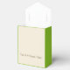 Celebrate your special day with this elegant apple green favour box. It has a beautiful white striped pattern that can be personalised with your own text. You can add a name, a date, or a thank you note to make it unique. This favour box is ideal for any occasion, such as a wedding shower, a baby shower, a graduation party, or an engagement party. It’s easy to fold and fill with sweets, jewellery, or other small items. Surprise your guests with this lovely favour box.