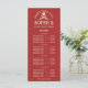 A baker, pastry chef, bakery menu red baker's price list, with a pretty decorative vintage type. Customise this menu card with your own categories, baked goods items and prices. Simply delete categories or lines of text that you don't need. You may also add more text lines to a category if you need them. Use the simple design tool to change fonts.
