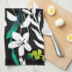Unique Black & White Floral & Bright Colour Accent Tea Towel