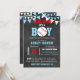 Awesome unique baseball theme baby shower invitations cards. Chalkboard background with baseball HOME RUN! - Its a boy. Blue and white colours. Editable template cards so you can add your information. Get matching stickers for your gift favours.