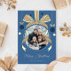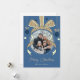 Spread holiday cheer with this festive card featuring a hand-drawn bow that crowns your favourite photo in a circular frame - creating the look of a festive Christmas ornament. This elegant blue and cream holiday card includes 'Merry Christmas' in a handwritten script font and your custom family name underneath.