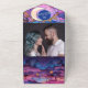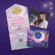 Embrace celestial enchantment with our vibrant, bohemian wedding invitation, adorned in rich hues of orange, pink, and blue. Featuring a romantic monogram amidst a backdrop of moons and stars, this invitation sets the stage for an unforgettable celebration. Complete with a QR code for effortless RSVP, access to our wedding website, and a charming photo of the couple, it promises an experience as unique and dazzling as the love it celebrates.