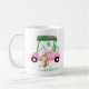 A charming unique golf cart -- pink and green -- tastefully done -- ready to run the course -- coffee / tea mug--This is a great gift for all golf lovers -- fun / attractive / unique. Personalise it with your/her initials/monogram. If you have any design questions or a special request, please send an email to: charmdesignstudio@rcn.com