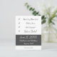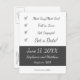 Catch the attention of all your invited guests with this cute, quirky, and unconventional Save-the-Date postcard that features a checklist of important events that lead up to the big day. The checklist text is in a charcoal-grey script font on a white background. The text for the date, location, and the engaged couple is the same script font in white on a charcoal-grey band.