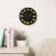 This unique design features Gold silhouettes of cats in various poses for the numbers with a circle of cats at the centre. Impress visitors with this amazing design. The background colour can be changed to suit your own requirements.