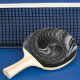 Unique Fractal Metallic Nautilus Golden Ratio Ping Pong Paddles with a unique spiral in black, white, and metallic greys.