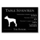 A funny and unique table or team number. Perfect for pet and dog lovers, this black and white monochrome table number is one of a collection of multiple dog breeds. The card reads the table number, followed by The Boxers, and a white outline image of a boxer dog. As a joke about the guests personalities, four dog traits are listed including friendliness toward strangers, drooling potential, tendency to bark and howl and playfulness, alongside a rating out of five stars. The table card is suitable for a wedding, party, quiz or any other event that requires a team, table or seating plan.
