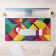 Introducing the "Unique Geometric Shapes Abstract Desk Mat" – an artistic fusion of modern geometry and vibrant creativity. This desk mat features an array of intricate, interlocking shapes that dance across a canvas of bold, contrasting colours. Each shape is meticulously designed to create a visually stimulating pattern that not only adds a touch of sophistication to your workspace but also sparks inspiration